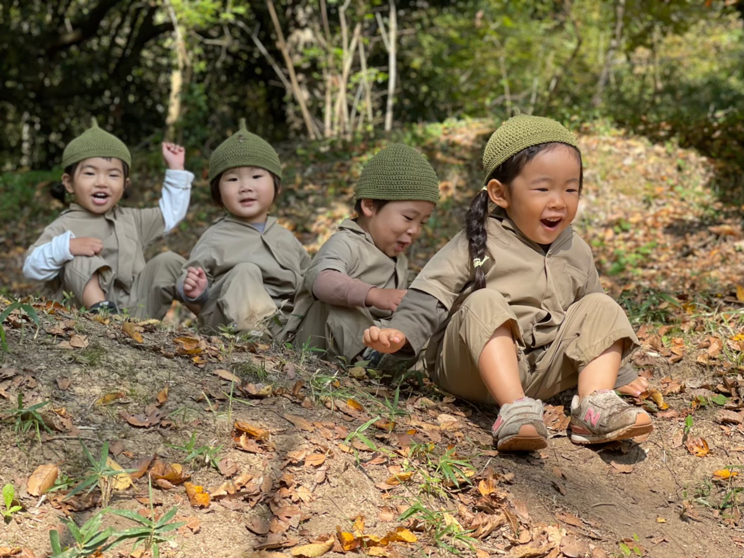 当園では、0歳児から山や森へ出かけ、自然にたくさん触れる「菌活保育」を大切にしています。土や草花に触れ、季節の移ろいを肌で感じる毎日は、こどもたちの心と身体を健やかに育てます。